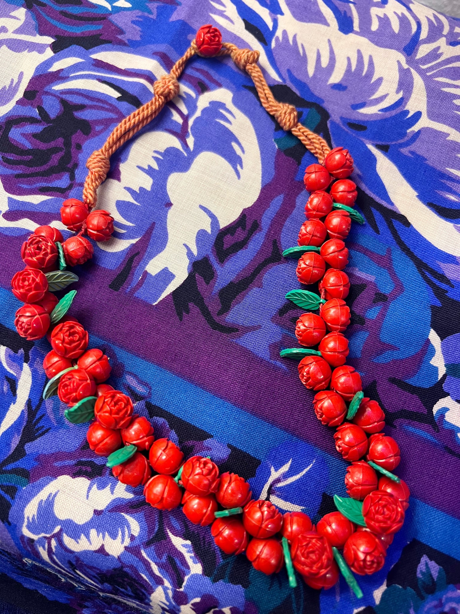 Details- Beautiful 50s handmade plastic rose rope necklace