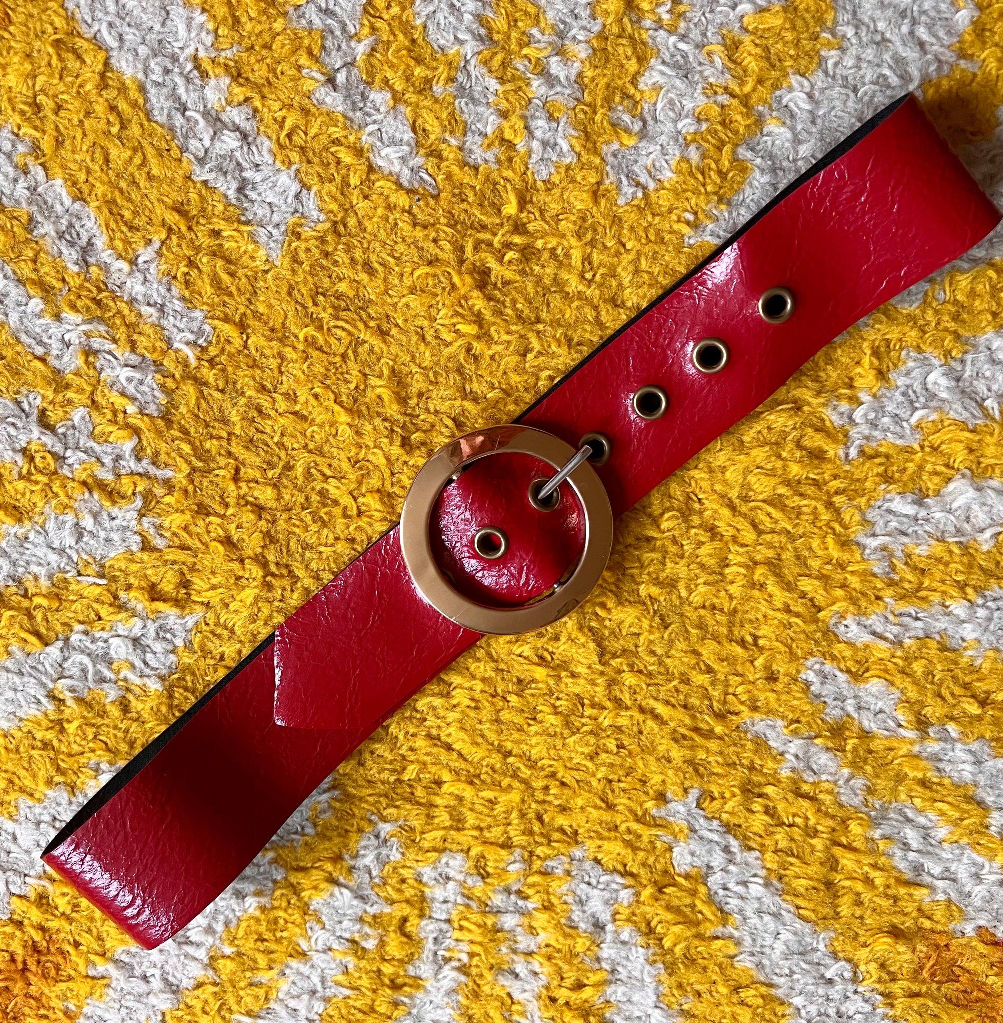 Details- 60s red patent belt with