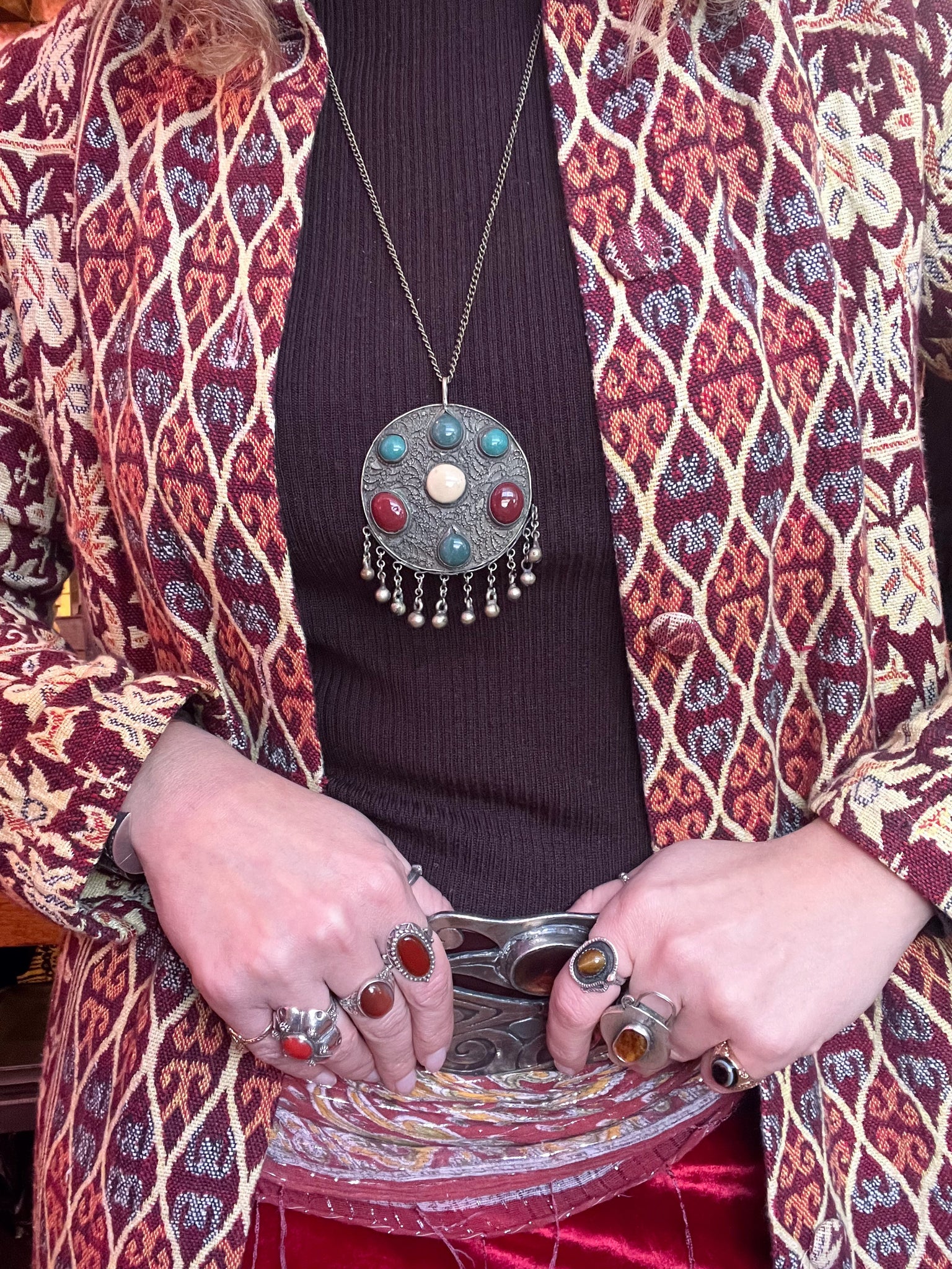 Details- 70s Kuchi cabochon stone inlay necklace with bells