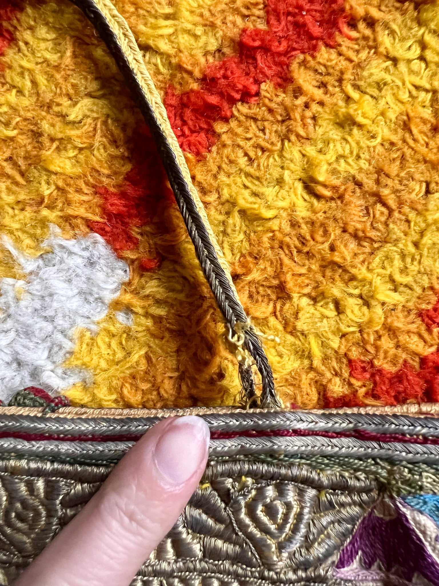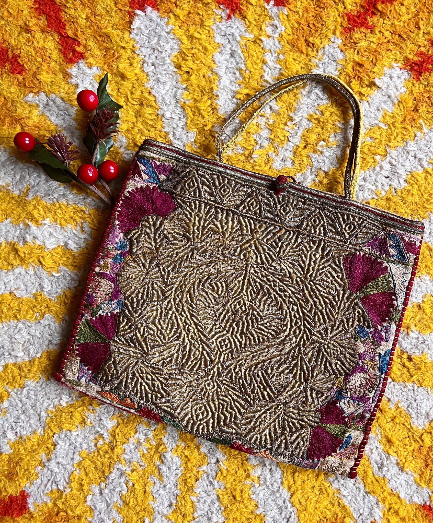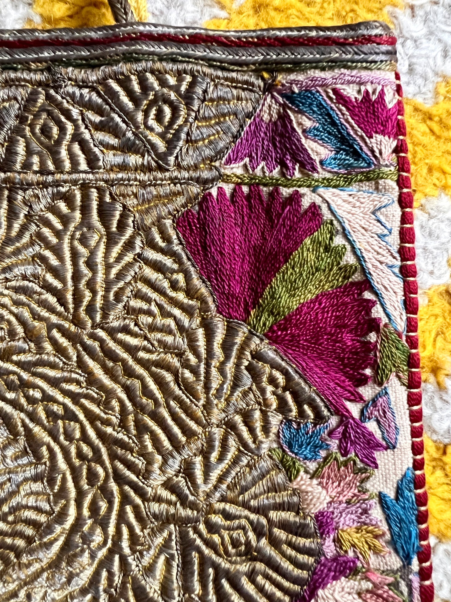 Details- Divine Antique c. 20s/30s Ottoman cotton and metal thread embroidered bag