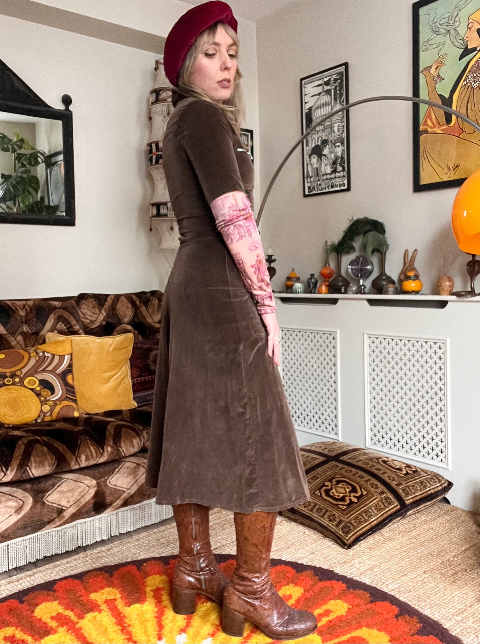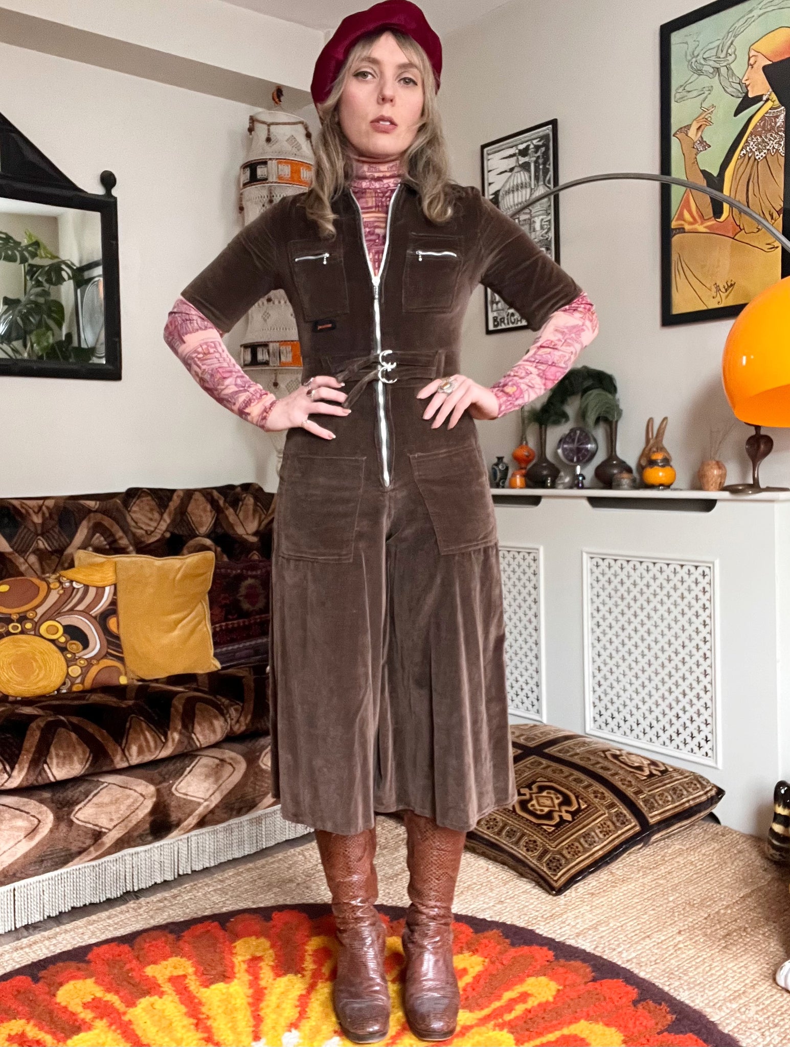 Details- 70s Glam rock brown velvet wide leg c