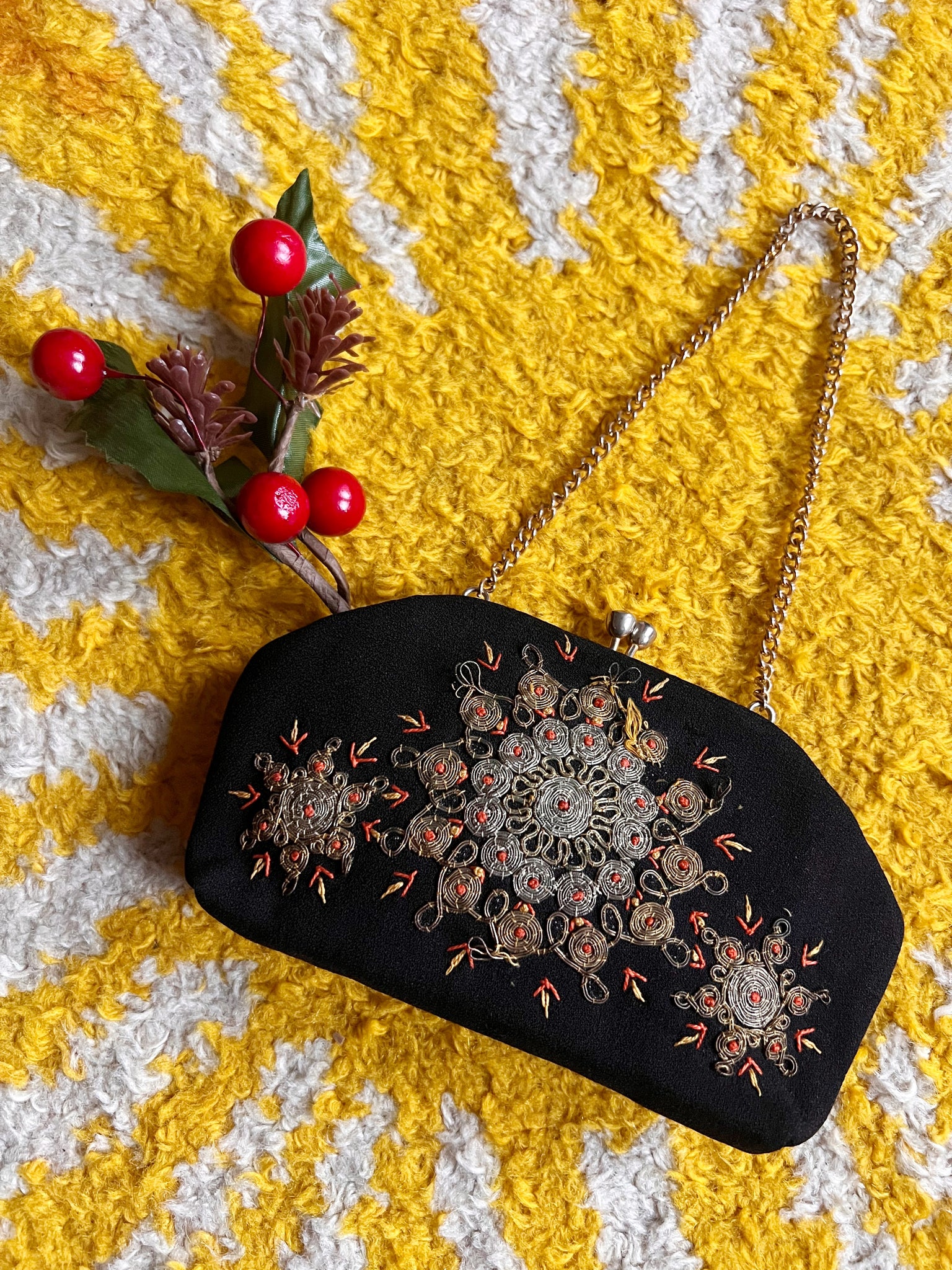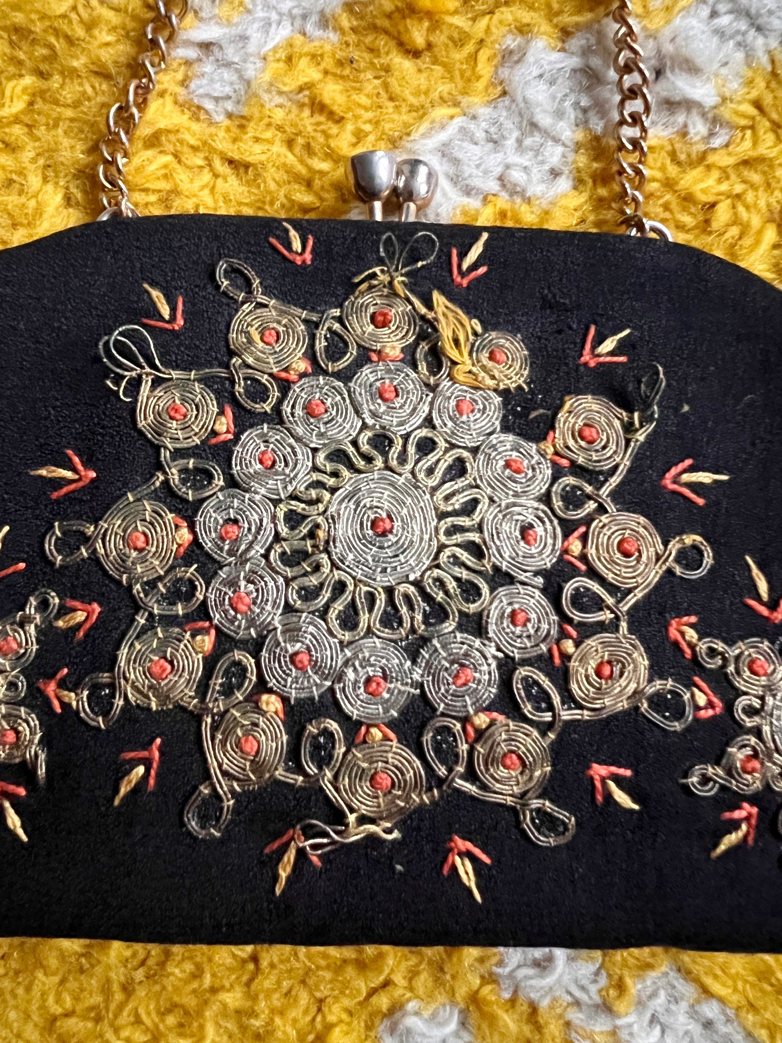 Details- 60s Moroccan metal embroidered crepe evening bag