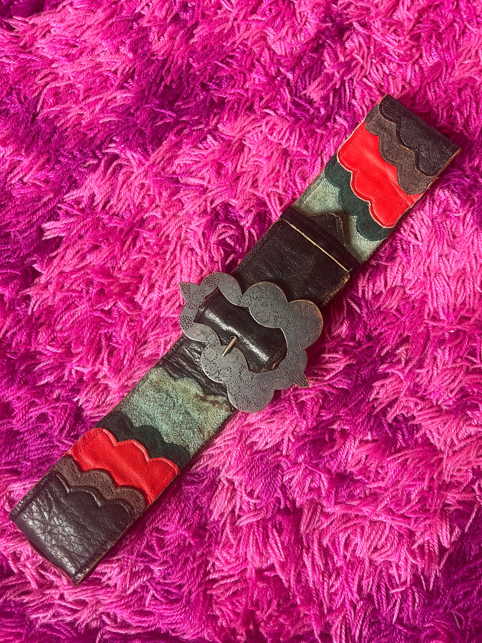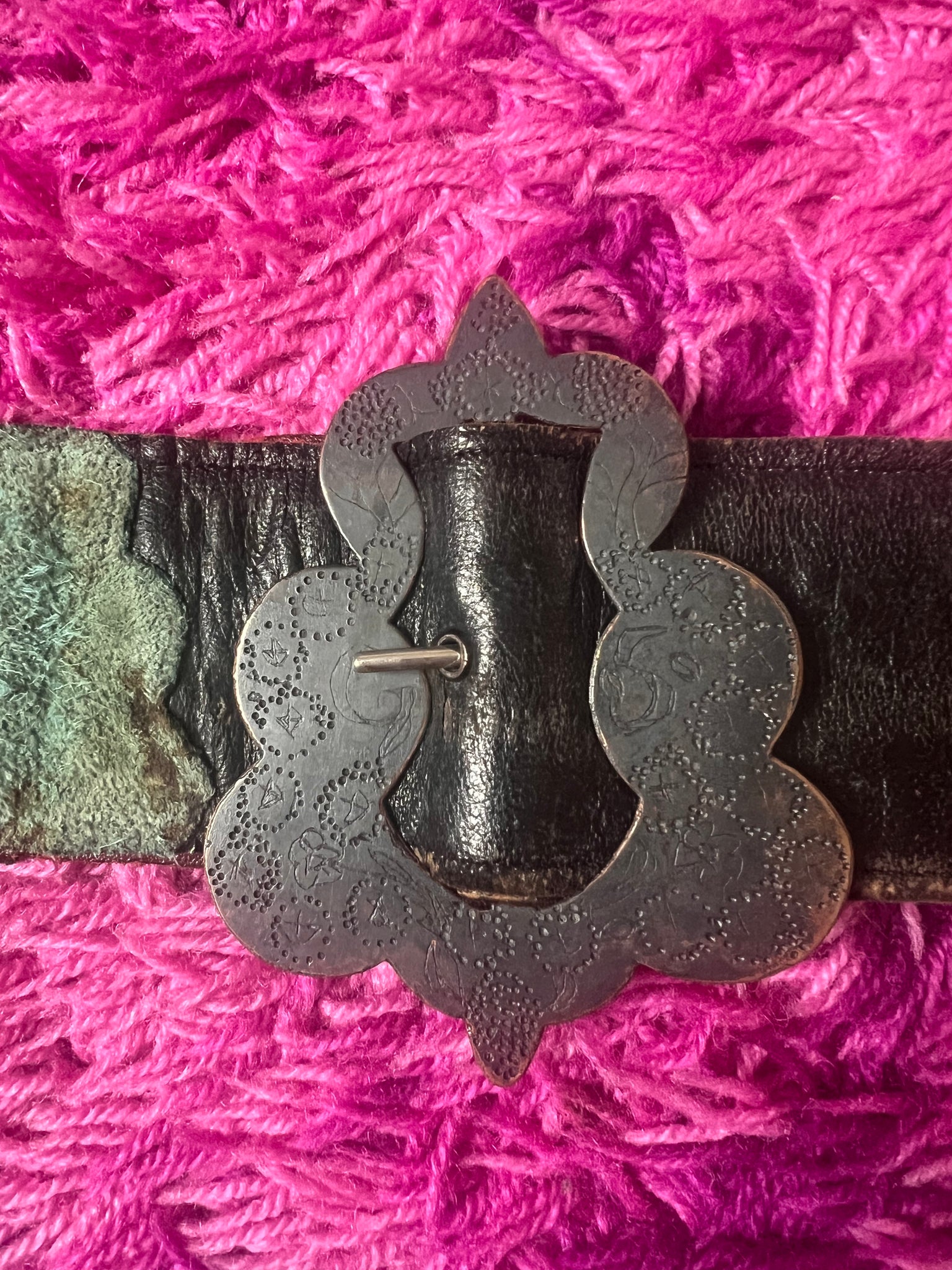 with gothic ornate tooled large brass buckle