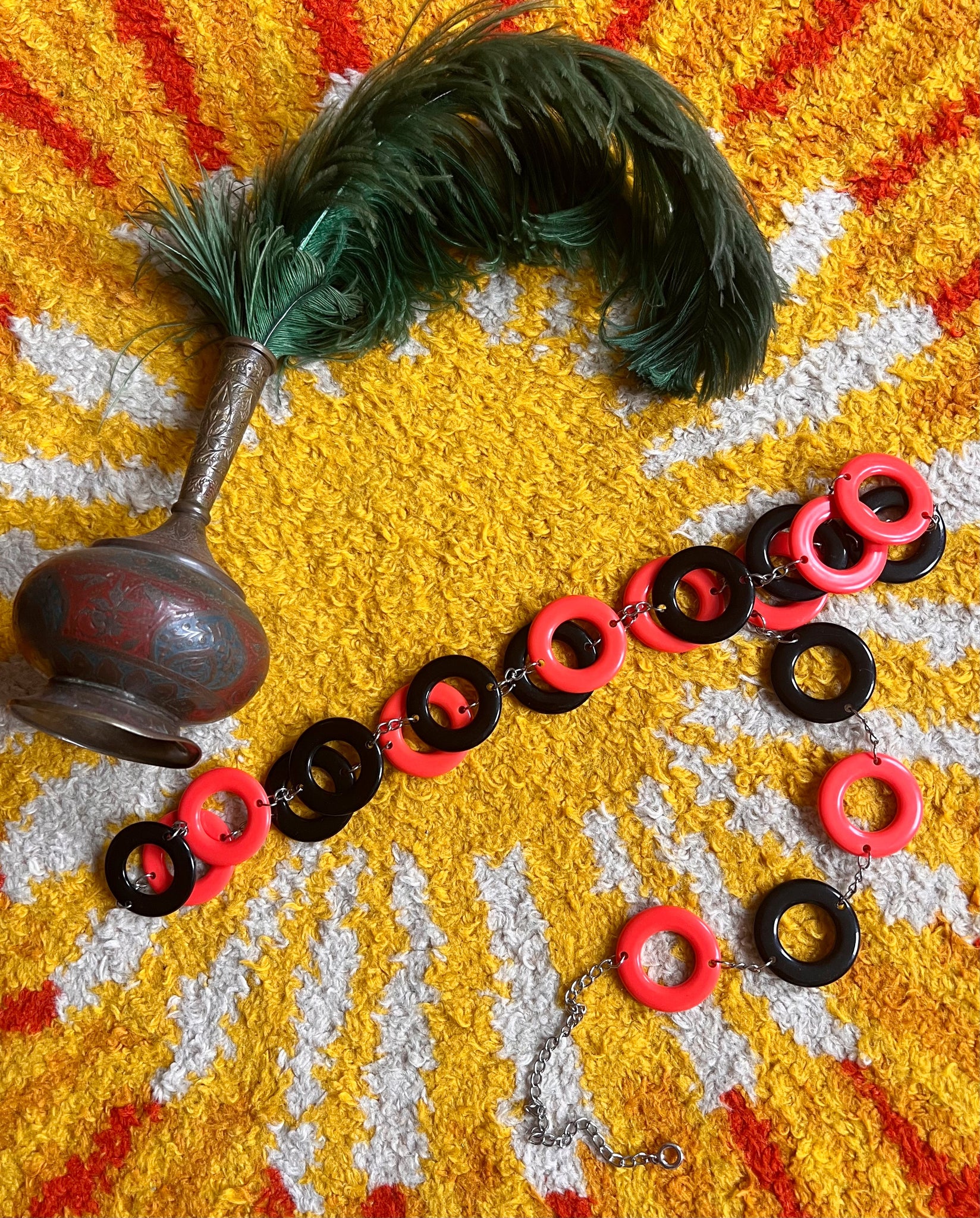 Details- 60s mod plastic orangey red and black chain disc belt