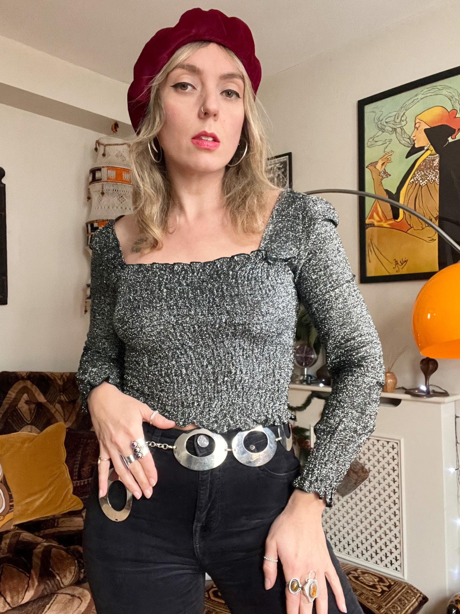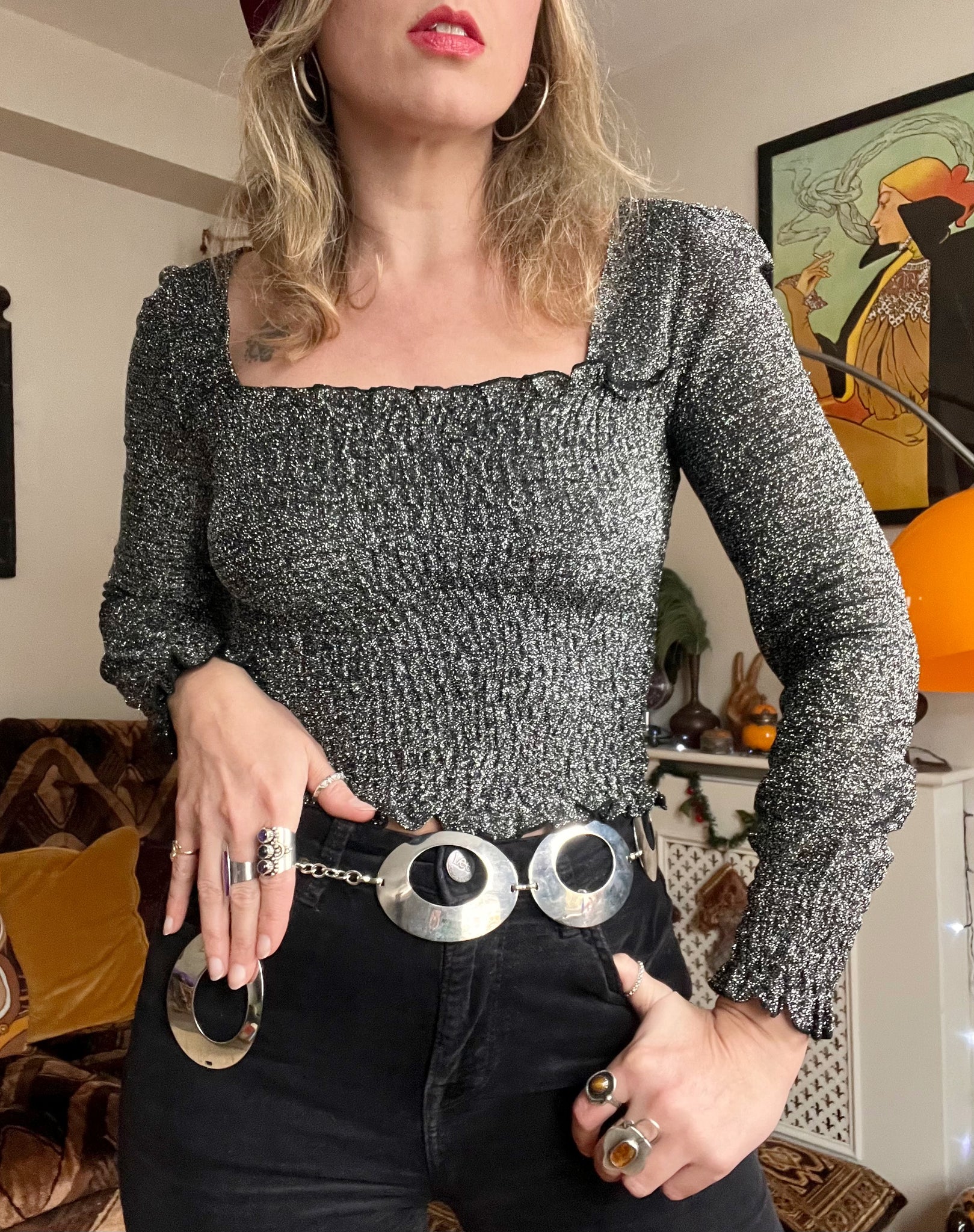 Details- 70s black and silver lurex ruched
